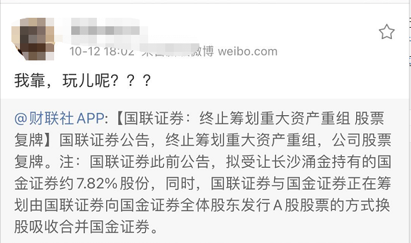 股民彻底炸锅了,国金证券、国联证券双双发布公告,终止合并,明日复牌!