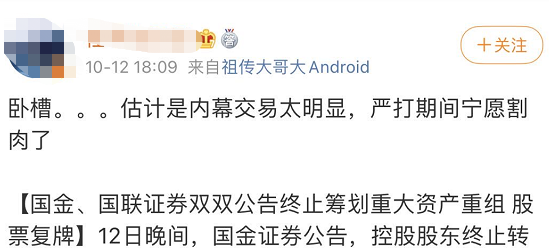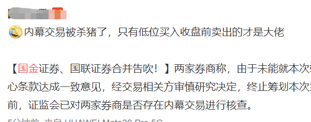 原标题:27万股民彻底炸锅!千亿券商合并“凉了”,网友:有内鬼,终止交易!内幕交易要被杀猪了?
