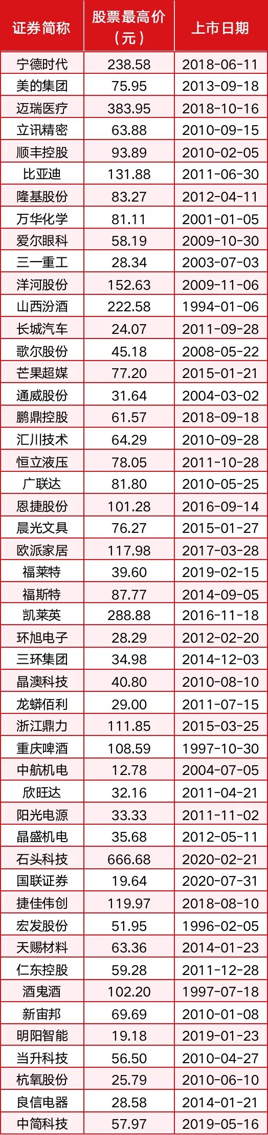 而在个股方面,《红周刊》记者发现当日盘面也是不乏亮点:截至收盘,家电龙头股之一的美的集团的股价收于75.89元,盘中一度创下了75.95元的历史新高。与此同时,昨日(12日)被高瓴资本斥资10亿元买入的医药股凯莱英今日跳空高开后,盘中创下了288.88元的新高;此外,白酒板块的龙头股之一五粮液在连续4个交易日上涨后股价已经达到242.27元,距离246.7元的历史高点仅一步之遥。在连续两日涨停后,二线白酒股洋河股份的股价也创下历史新高……