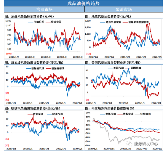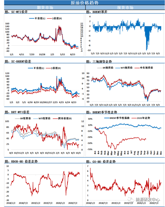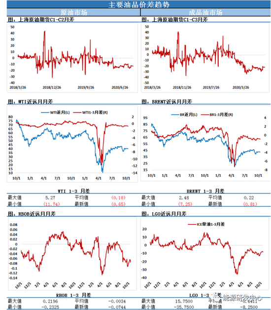【1】OPEC月报:OPEC 9月份石油日产量下降5万桶/日,至2411万桶/日。据二手资料显示,阿联酋9月原油产量减少21.7万桶/日。沙特9月原油产量减少0.2万桶/日;尼日利亚9月原油产量减少5.8万桶/日;伊拉克9月原油产量增加2.2万桶/日。利比亚9月原油产量增加5.3万桶/日。美国石油制品净进口较上轮统计减少19.3万桶/日至-59.8万桶/日;中国8月原油进口量为1120万桶/日,成品油出口量重返100万桶/日以上。下调非OPEC2021年供应增长预测11万桶/日至90万桶/日。将2020年非OPEC供应下降预测下调30万桶/日至240万桶/日。经合组织8月份石油库存比五年平均水平高出2.19亿桶。8月份,经合组织石油库存下降了2070万桶,至3.2亿桶。
