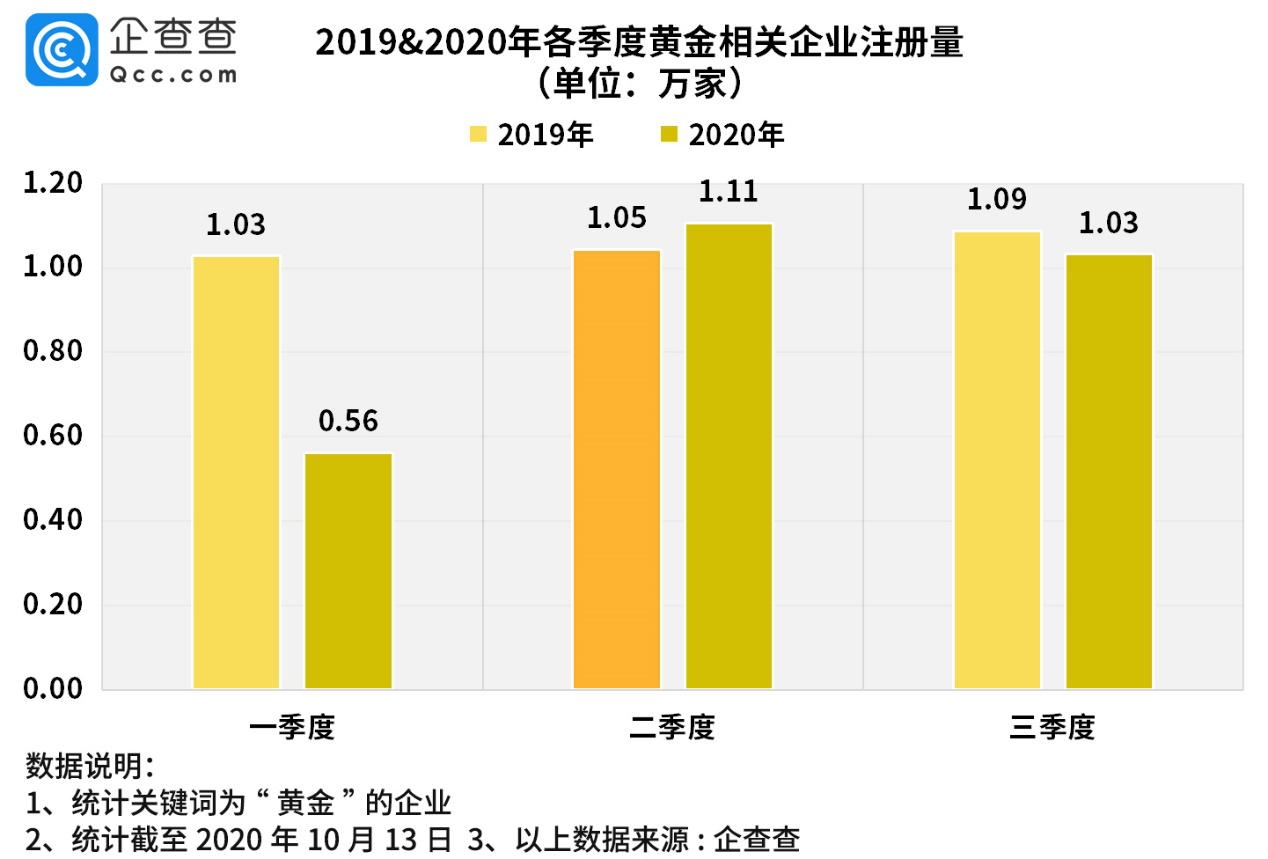 企查查数据显示,今年前三季度黄金相关企业新注册2.7万家。其中,二季度迅速回升至1.11万家,赶超去年同期。刚刚过去的三季度,黄金相关企业新增1.03万家,环比下降7.2%。