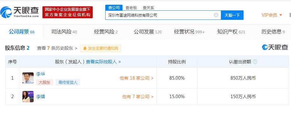 国家企业信息公示系统显示,深圳市富途网络科技有限公司成立于2007年12月18日,注册资本1000万元,法定代表人为李华。经营范围包括互联网软件产品的技术开发及销售,国内贸易,网络创意图形影像的设计、拍摄及制作(不含限制项目,制作项目仅限于电脑制作)从事广告业务(法律、行政法规规定应进行广告经营审批等级的,另行办理审批登记后方可经营);经营进出口业务等。