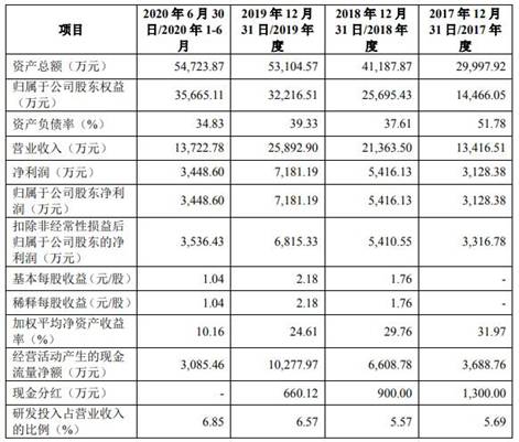 华锐工具ROE下滑。2017年、2018年、2019年、2020年1-6月,华锐工具加权平均净资产收益率分别为31.97%、29.76%、24.61%、10.16%。