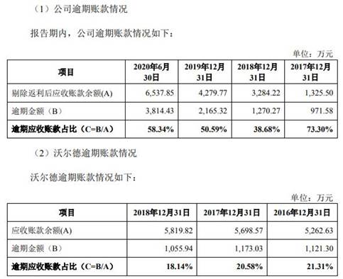 同行业可比公司仅沃尔德披露逾期账款相关数据,2016年末、2017年末、2018年末,沃尔德逾期应收账款占比分别为21.31%、20.58%、18.14%。