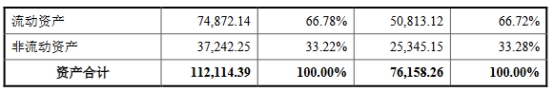 过去三年及一期,英力电子流动资产分别为5.08亿元、7.49亿元、8.66亿元和7.36亿元,非流动资产分别为2.53亿元、3.72亿元、4.73亿元和4.88亿元。同期,英力电子流动资产中货币资金仅为1503.79万元、4413.85万元、7460.21万元、3743.27万元。