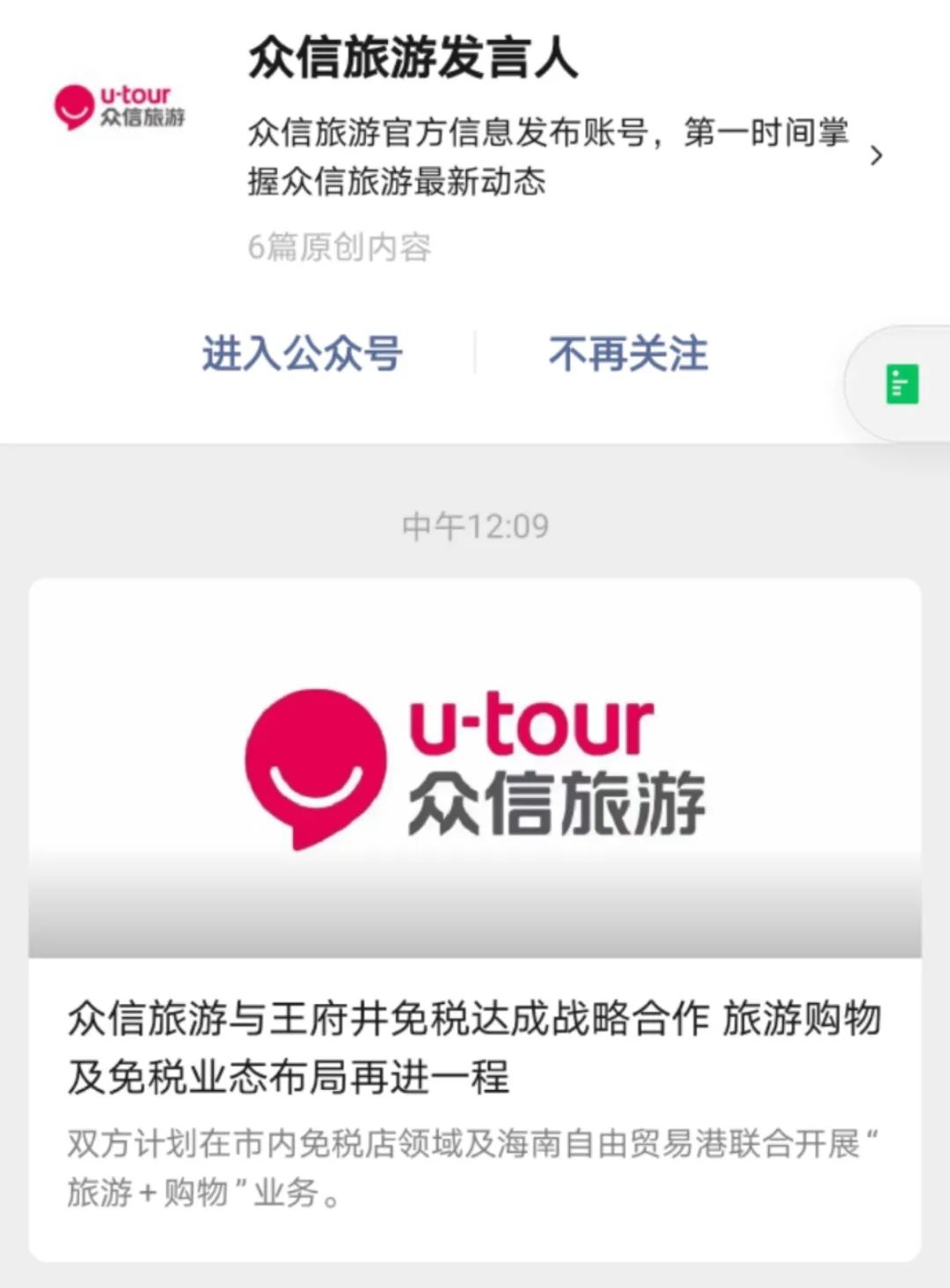 15日中午,微信号众信旅游发言人发布一则消息,近日,众信旅游与王府井免税签署战略合作协议,双方计划在市内免税店领域及海南自由贸易港联合开展“旅游+购物”业务,借助众信旅游已有基础流量、深耕多年的目的地经验以及对中国消费者旅游购物需求判断,结合王府井免税及王府井集团在产品、品牌以及旅游零售运营等多方面优势,共同开发境内外旅游零售业务。此次合作为众信旅游发展“旅游+购物”及免税业态开拓了新的成长空间,同时使得众信旅游深度参与海南自贸港建设拥有更加多元化实现路径。