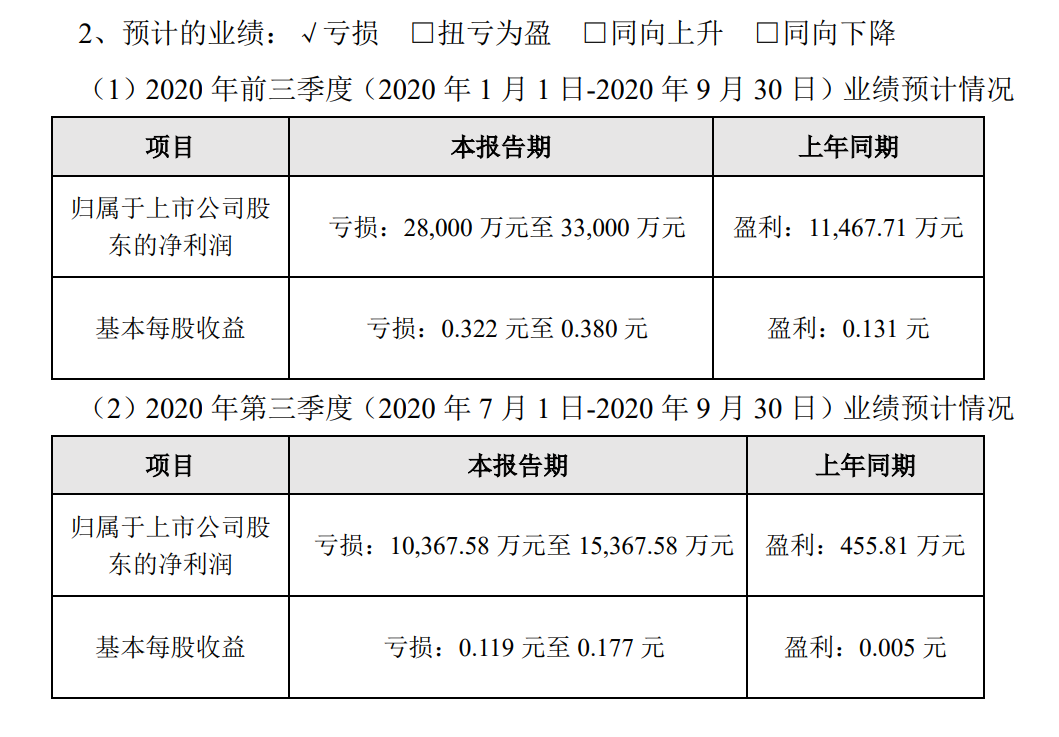 众信旅游刚刚才发布了三季度业绩预告,公司预计,前三季度,归属于股东净利润亏损2.8至3.3亿元人民币,去年同期为盈利1.15亿元人民币;第三季度,归属于股东净利润亏损1.04至1.54亿元人民币,去年同期为盈利456万元人民币。