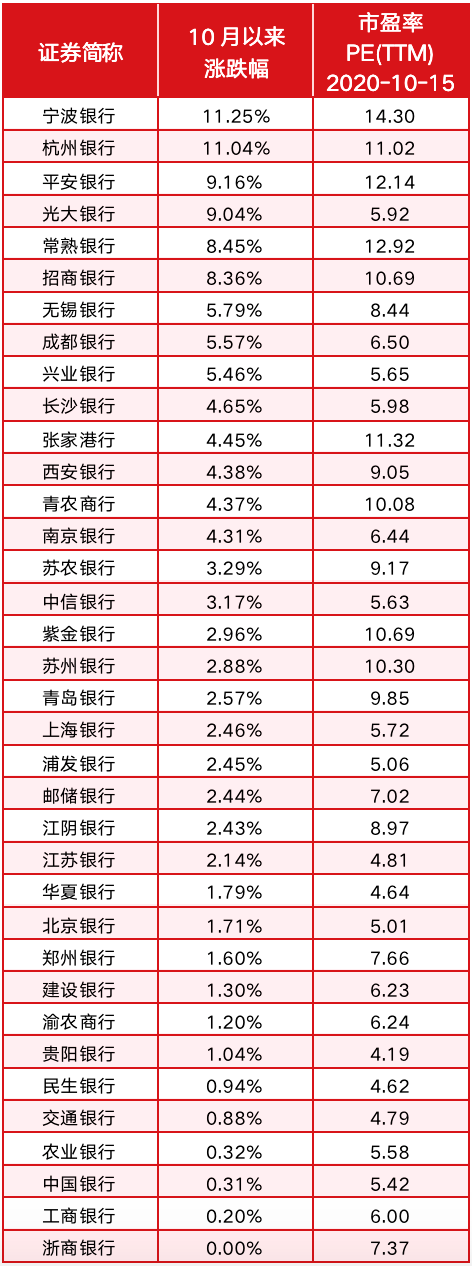 10月15日,沪深两市继续震荡,截至收盘,上证指数收跌0.26%,深成指数收跌0.48%,创业板指收跌0.95%。在多数板块当日出现调整的同时,以银行为代表的大金融板块是当日少数几个抗跌的板块之一。