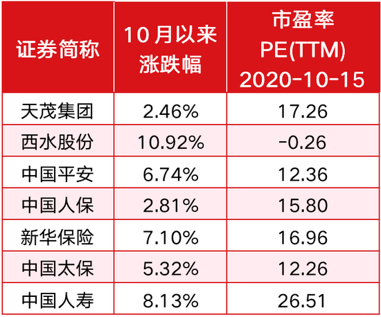 与券商相比,保险股在节后的涨幅更为亮眼。截至10月15日收盘,10月以来保险板块的涨幅达到了6.64%。