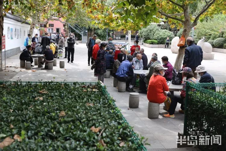 10月15日,在市北区老年乐园内,人们都戴上口罩在这里活动,跳广场舞、遛娃、打牌等项目与往日一样进行中。
