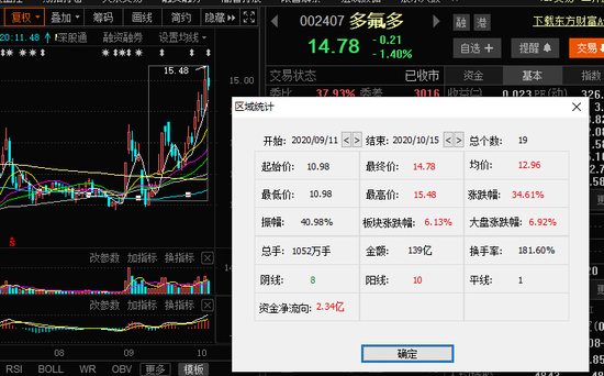 9月以来,多氟多股价出现显著波动,统计发现,该股近一月涨幅已逾34%。