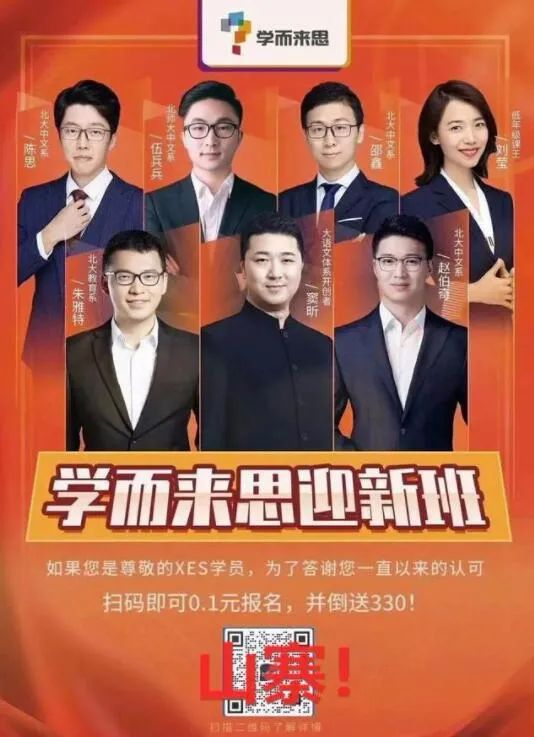 近日,K12教育机构豆神大语文发布了一张“学而来思迎新班”招生海报,其中的“学而来思”及标识,都与知名教育机构学而思的商标高度近似,海报还打出了“如果您是尊敬的XES学员……扫码即可0.1元报名,并倒送330!”的宣传语。