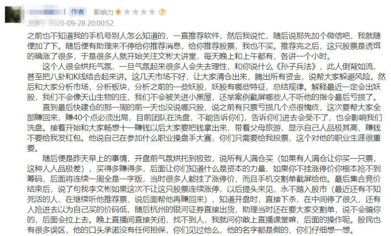 股吧里,部分投资者表示,是被一个叫李文彬的人骗了。