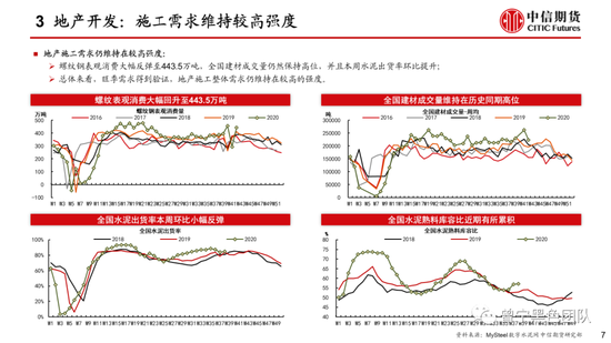 地产施工:旺季需求释放,全国建材成交与螺纹钢表观消费量均显著提升,水泥出货率也环比提升;