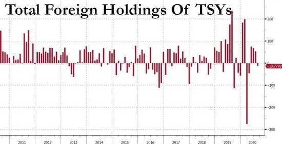 在连续三个月买入之后,海外投资者又开始出现连续抛售。仅8月份,美债前三大海外持有国日本、中国、英国已合计抛售达248亿美元。