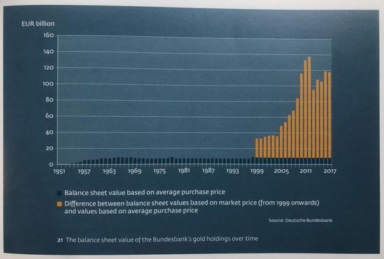 而在欧元区,各成员国央行的资产负债表上直接持有黄金。自从1999年欧元体系启动以来,欧元区成员国的央行一直在对其黄金储备按照市值进行计价。这一点与美国有很大不同,美国的货币黄金仍按每金衡盎司42.22美元的法定价值计价。从会计的角度来看,欧洲中央银行已经建立了一个资本缓冲,包括未实现的黄金价格收益,以吸收坏账损失。