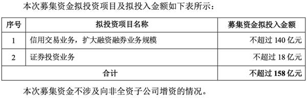 1、拟以不超过140亿元,用于加快发展融资融券等信用交易业务,提升市场份额,进一步缩小与一流经纪类券商的差距;