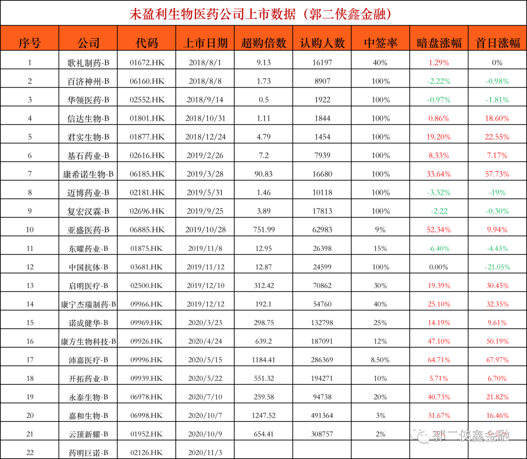 行业方面,自2018年港交所允许未盈利的生物医药公司上市以来,已经有21家公司上市,以上市首日计,其中6跌1平14涨,最近一年更是创造了9连涨,而且涨幅都还不错。