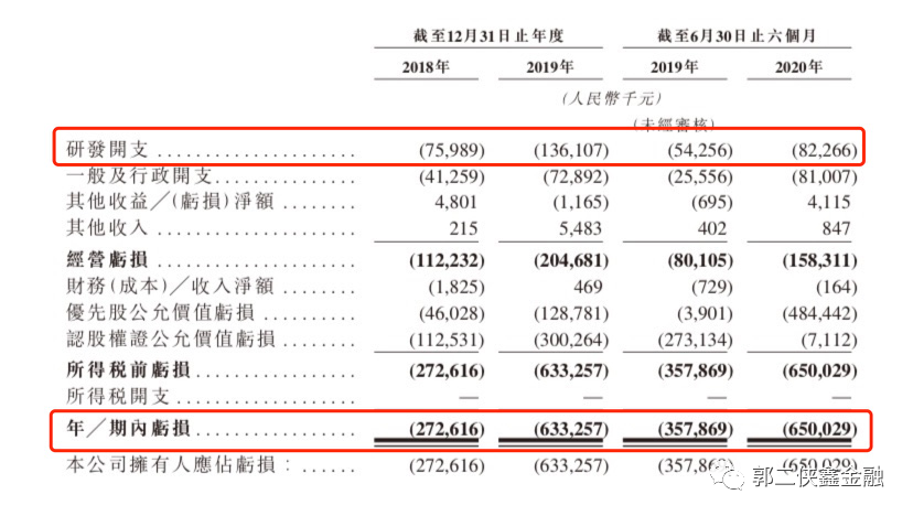 在2020上半年,公司的亏损已经超出2019全年亏损,达到6.5亿元,其中,公司研发开支已经达到了8226.6万元。