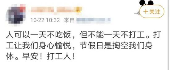“打工人”对于打工的态度都非常积极,起早贪黑不怕累,从不迟到不早退,没有假期也无所谓,因为“打工人”有钢铁般的意志、炙热的情怀。