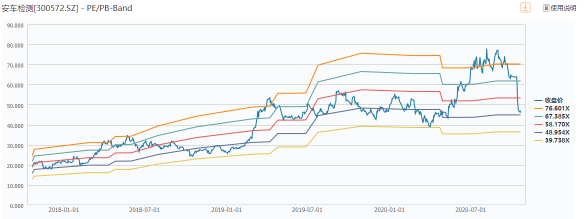 安车检测股价在今年8月一度涨至79.95元/股,市盈率(TTM)也一度高达80倍。