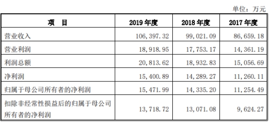 2017年至2019年,巴比食品营收分别实现8.67亿元、9.90亿元、10.64亿元;净利润分别实现1.13亿元、1.43亿元、1.54亿元;归母净利润分别实现1.13亿元、1.43亿元、1.55亿元;扣非净利润分别实现9624.27万元、1.31亿元、1.37亿元;经营活动产生的现金流量净额分别实现1.40亿元、1.36亿元、1.11亿元;货币资金分别为3.51亿元、4.58亿元、4.87亿元。