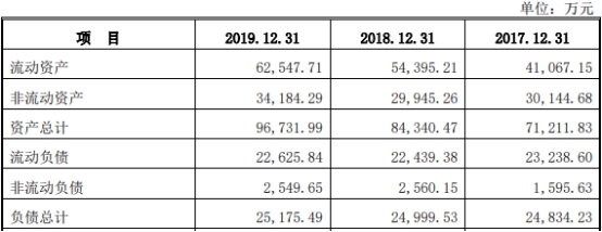 2017年至2019年,巴比食品资产总计分别为7.12亿元、8.43亿元、9.67亿元;负债总计分别为2.48亿元、2.50亿元、2.52亿元。