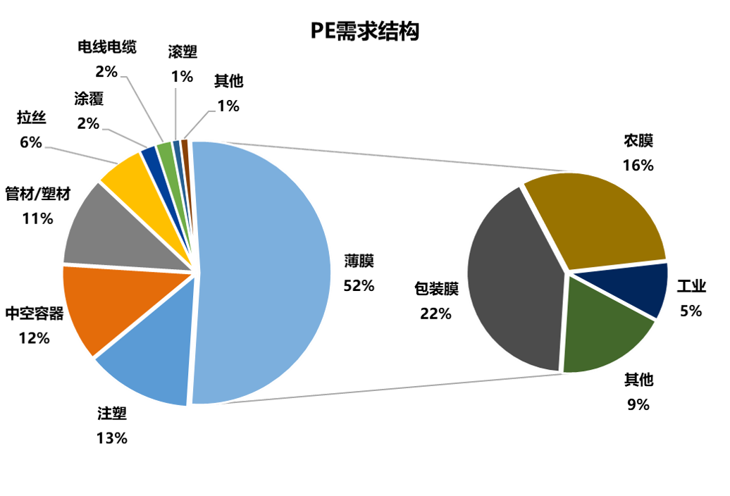 3.下游分化严重,整体需求不及去年:根据本次调研,山东地区PE下游订单数量:包装膜>中空>管材>农膜,国内日用品需求稳步增长,海外订单转移,都令包装膜需求大放异彩,这也是线性和拉丝(期货交割品,包装膜主要原料)的价格自6月以来一路上涨的主要原因。中空和管材受益于终端汽车和基建的回暖,表现可圈可点。而农膜在产能过剩加剧和高端农膜抢占市场份额的双重夹击下,只能用惨淡度日形容。综合而言,二季度内需集中释放后,三季度已经略显疲态,四季度下游企业普遍看空,除了订单量下滑,加工利润微薄这些现实因素外,部分还担心海外疫情加重和聚乙烯新装置大量投产。