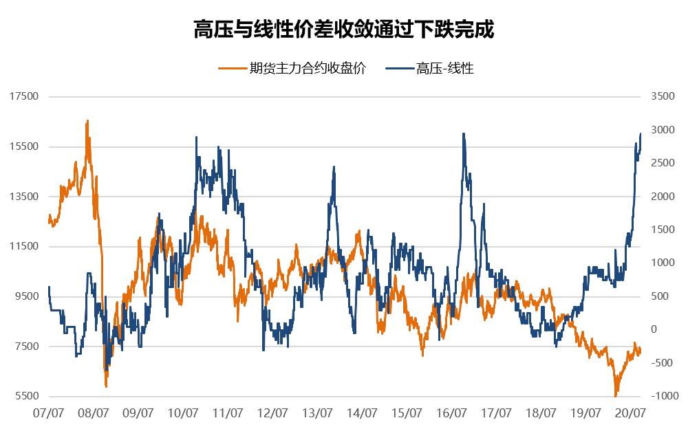 调研发现:(1)库存偏低:最大库容8000吨,去年同期库存为5000吨,今年只有2000吨,其中60%都是低压,剩下是线性。(2)进出口贸易不稳定:海外疫情加重,上半年还有贸易往来的印度和台湾客户已经失去联系。(3)贸易商报价紧跟期货:由于今年期货价格波动较大,多数贸易商日内都会根据期货实时价格频繁调整报价。