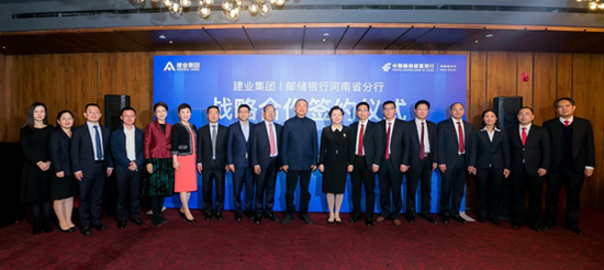 2020年10月21日,建业集团和中国邮政储蓄银行河南省分行在郑州建业艾美酒店成功签署战略合作协议。中国邮政储蓄银行河南省分行党委书记、行长金春花,纪委书记张忠平,副行长陈时峰、吕周谦、柏植军,建业集团董事长胡葆森,建业集团党委书记、联席董事长刘卫星,建业集团执行总裁王俊,建业集团党委副书记、副总裁代纪玲,建业集团高级副总裁、建业地产总裁袁旭俊,建业集团副总裁陈瑛等双方领导出席签约仪式。
