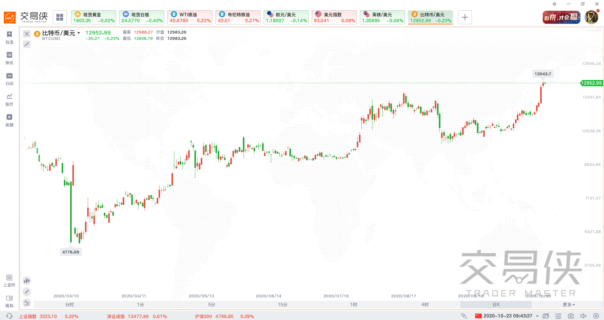 到目前为止,比特币已从3月4776美元左右的低点飙升逾150%,近日一度上破13000美元关口,刷新2019年6月以来的最高水平,但距离2017年12月创下的19000美元高点还有一定距离。