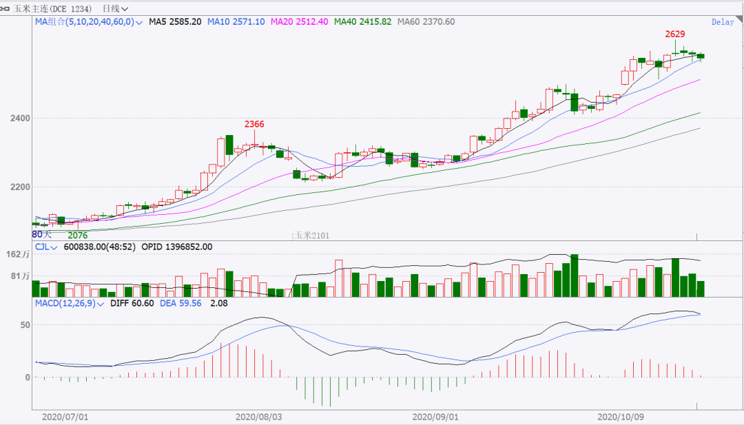 有效供应量始终提不起来是玉米节后爆红的关键因素。本以为国庆节后新季玉米充斥市场,期价就将逐渐回落。没想到,东北收割严重滞后,台风所致的倒伏地块收割尤为缓慢,多地农户到本月底都难以完成收割,上量明显不及预期,导致市场供不应求。