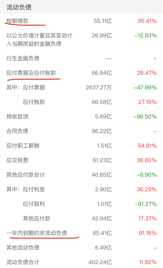 现金流下降的另一面,是豫园股份的负债情况大幅上升。根据2020年中报,期末豫园股份短期借款上升95.41%,至55.11亿元;应付票据及账款则升26.47%至66.84亿元;一年内到期非流动负债升91.18%至65.41亿元。