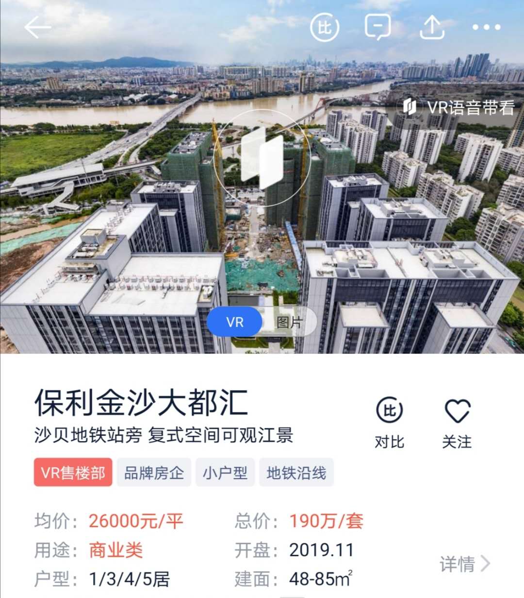 但保利金沙大都汇项目在贝壳找房、楼盘网、搜狐焦点等其他平台的均价是2.6万元/平方米,这样算来建面76平方米户型的总价是197.6万元,同时贝壳找房平台也有3万元的购房补贴,算下来和天猫好房的折后价相差无几。