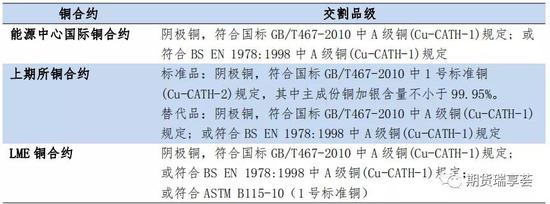 需要注意的是能源中心的铜期货对交割品级的要求与上期所和LME的要求都不同