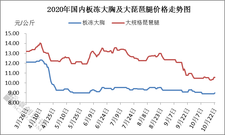 白羽肉鸡市场虽然没有上调,但其下游环节鸡产品市场却有走高。国庆过后,鸡产品市场在维持了一段时间的稳定后,近日小幅走高。鸡大胸、大规格琵琶腿、大规格翅根以及爪类有不同程度的上调,多数在200-500元/吨。鸡产品价格偏低,经销商采购积极性稍有提高。