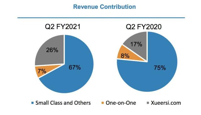 从业务结构来看,小班及其他业务贡献了营收大头,占总收入的比重从上财年同期的75%下降至该财季的67%。学而思网校业务的收入占比,则从上财年同期的17%提升至26%。
