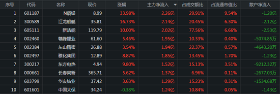从个股来看,主力资金最青睐的3只股票分别是N厦银、江龙船艇、新洁能,流入金额分别为2.26亿元、2.14亿元、2.02亿元,所对应的涨幅分别为33.98%、16.73%、10.00%。