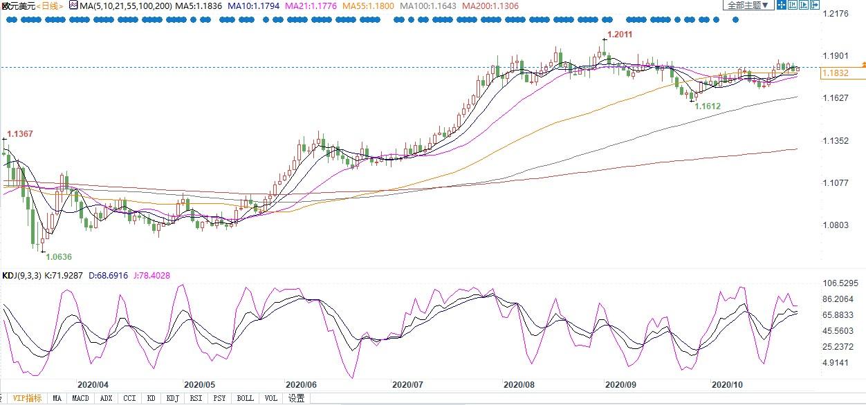 因美国大选不确定性承压,但欧洲疫情更加严重的爆发,导致西班牙被迫实施全境宵禁措施等状况,仍然令投资者对欧元区经济前景更加忧心忡忡,成为利空欧元汇价的重要因素。