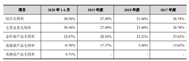 同期,华绿生物金针菇产品毛利率分别为30.95%、36.62%、36.19%、27.65%、23.21%、28.34%、32.67%。可比公司雪榕生物的金针菇产品毛利率分别为29.71%、34.70%、32.49%、25.61%、18.52%、27.10%、32.68%。