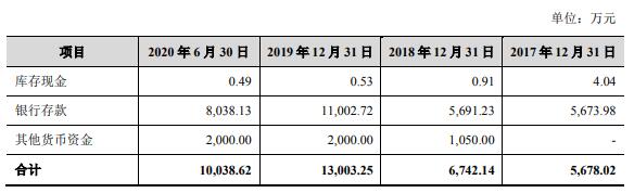 2014年末、2015年末、2016年末、2017年末、2018年末、2019年末、2020年6月末,华绿生物货币资金分别为2745.75万元、2746.49万元、2.51亿元、5678.02万元、6742.14万元、1.3亿元、1亿元,占各期末流动资产的比例分别为38.64%、31.12%、76.65%、27.85%、38.95%、43.06%、32.06%。公司货币资金主要为银行存款,各期末,银行存款分别为2582.72万元、2733.04万元、2.51亿元、5673.98万元、5691.23万元、1.1亿元、8038.13万元。
