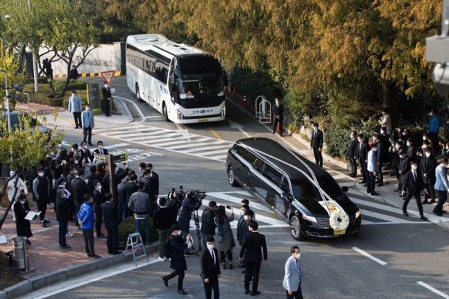 告别仪式后,李健熙的灵车从医院出发,沿着故人生前的足迹,经过Leeum美术馆、龙山区汉南洞私人住宅、京畿道三星华城和器兴半导体工厂等地,公司职员也纷纷为故人送行,随后灵车驶向位于水原市的家族墓地。