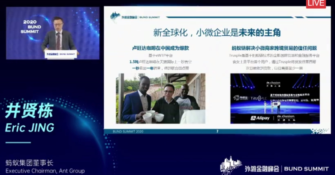 小微企业,今天做全球市场,业务可能不是来自一个伙伴,而是来自全球很多伙伴,可能不来自机构,而是直接来自消费者。如何做好这样的交易难度非常巨大,新技术让小微企业可以成为全球化的主角。只有年轻人、小微企业全球化合作,才可以给我们带来更多的繁荣、发展。