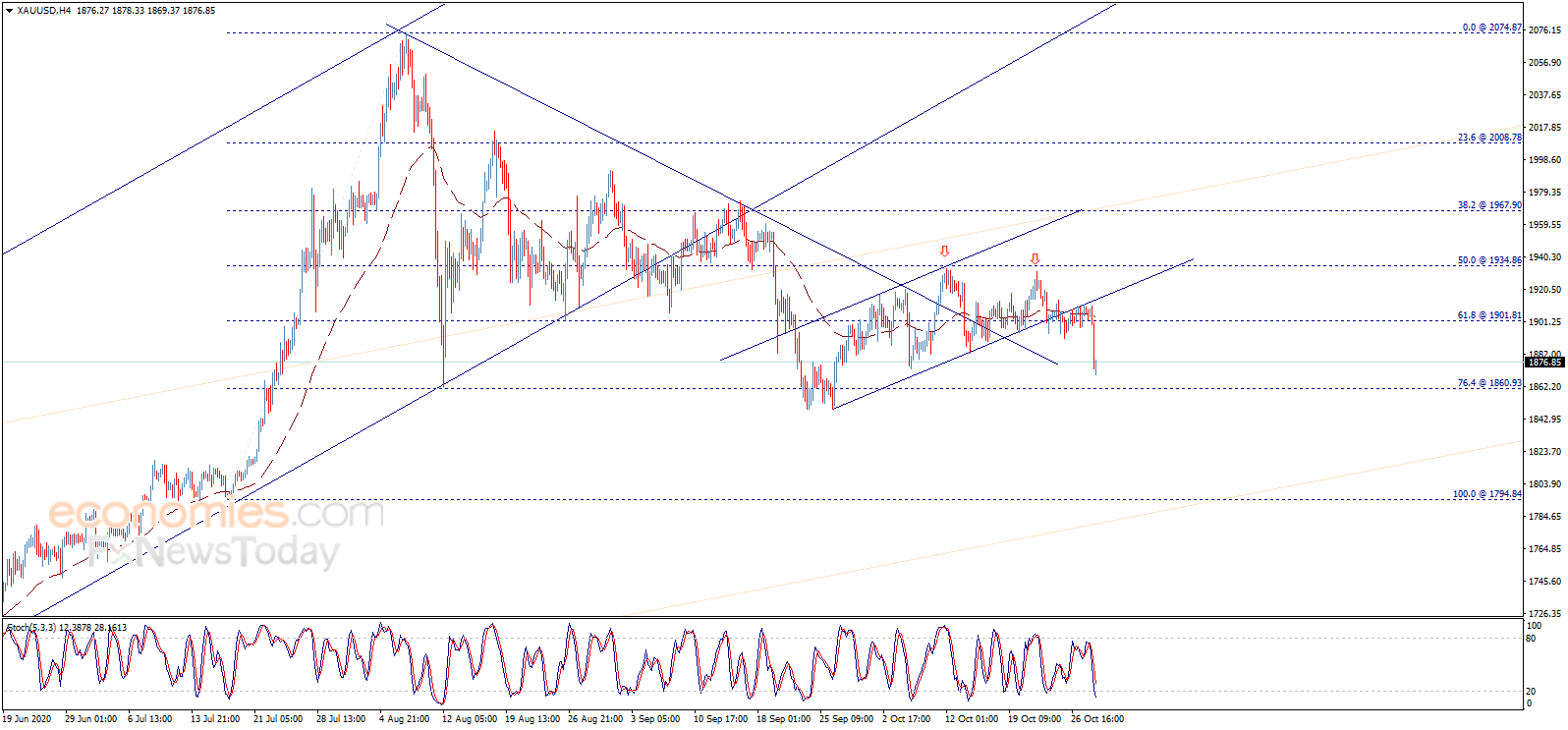 Economies.com在文章中写道,金价周三大幅下挫,并一度接近我们等待的主要看空目标1860.90美元/盎司,从而巩固了金价继续看空趋势的预期。