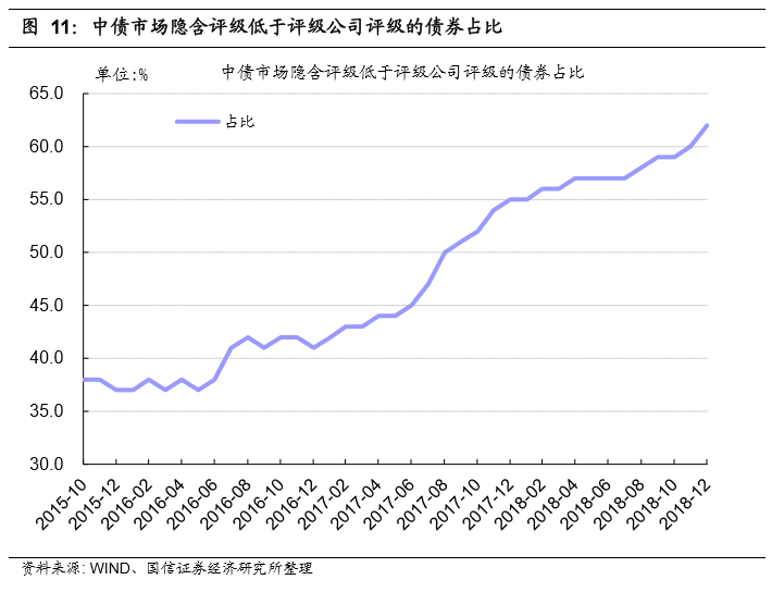 对于信用债中债估值曲线和外部评级曲线的走势差异,主要是因为上述两个评级体系的差异不断加大。近些年国内非金融企业信用债市场中外部评级下调比例一直不高(年度占比普遍1%以下),但是中债市场隐含评级下调比例偏高。