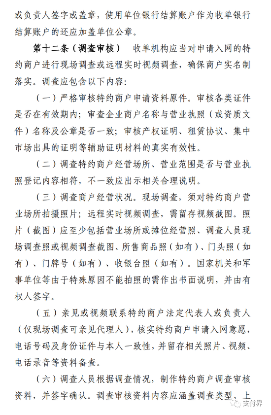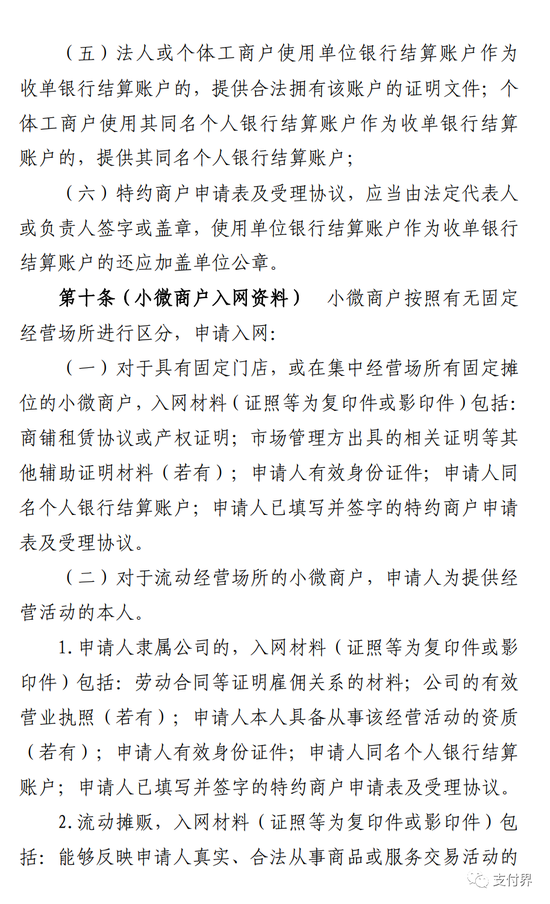 为从源头落实商户实名制、防范支付风险。近日人民银行成都分行发布四川省特约商户拓展指引(征求意见稿),意见稿全文工二十三条,其中第二条要求特约商户应当是依法设立、从事合法经营业务的企事业单位、个体工商户或其他组织,按照国家工商行政管理机关有关规定开展网络商品交易等经营活动的自然人,以及依据法律法规和相关监管规定免于办理工商注册登记的实体特约商户(小微商户)。