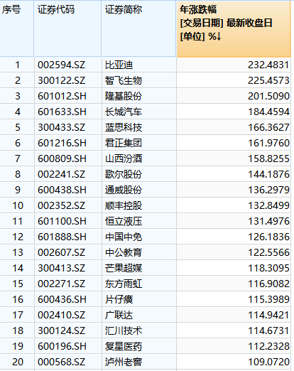今年以来,比亚迪A股涨幅达到232.48%,在沪深300成分股当中高居第一。