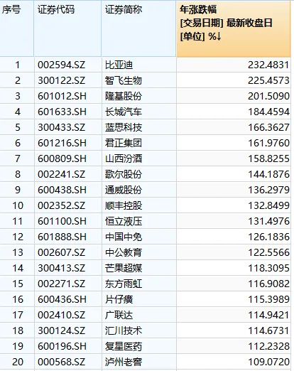 今年以来,比亚迪A股涨幅达到232.48%,在沪深300成分股当中高居第一。