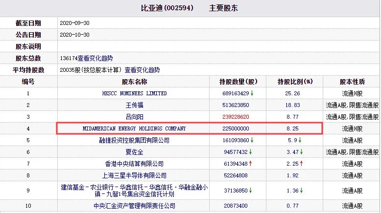 股价大涨也让股神巴菲特赚得盆满钵满。据悉,2008年9月,股神巴菲特投资的旗下附属公司MidAmerican(中美能源控股公司),斥资2.3亿美元(18亿港元),以8港元/股的价格,认购了比亚迪公司2.25亿H股股份。