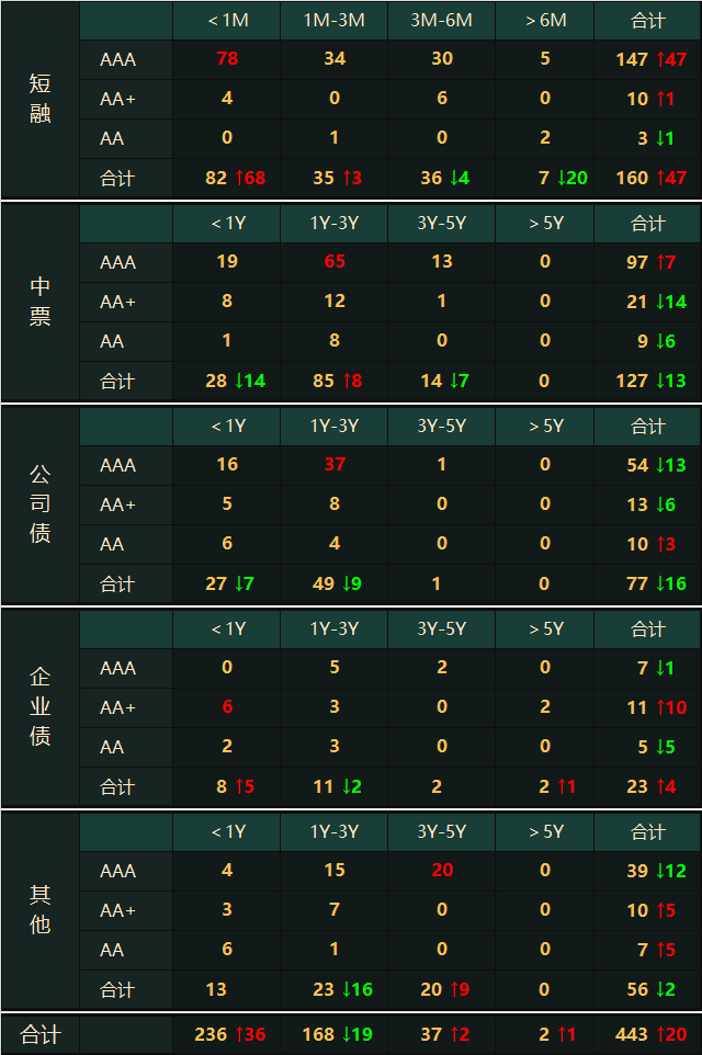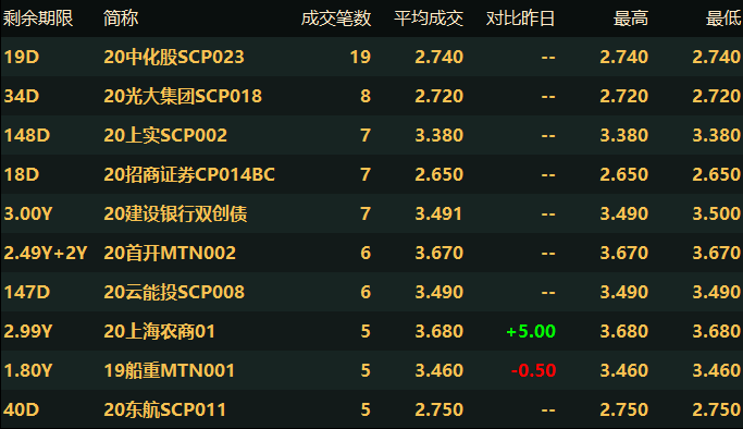 信用债总体交投有所减少,短融 <1M期限 AAA券种成交密集。